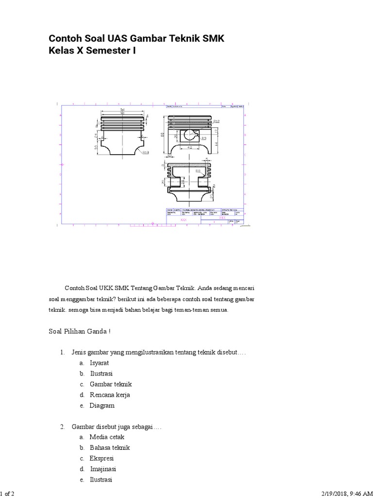 Contoh Soal Gambar Teknik Semester Genap - Materi Gambar Teknik Otomotif Kelas 10 Semester 2 Guru Galeri - Ujian akhir semester genap tahun ajaran 2016/2017 mata pelajaran :